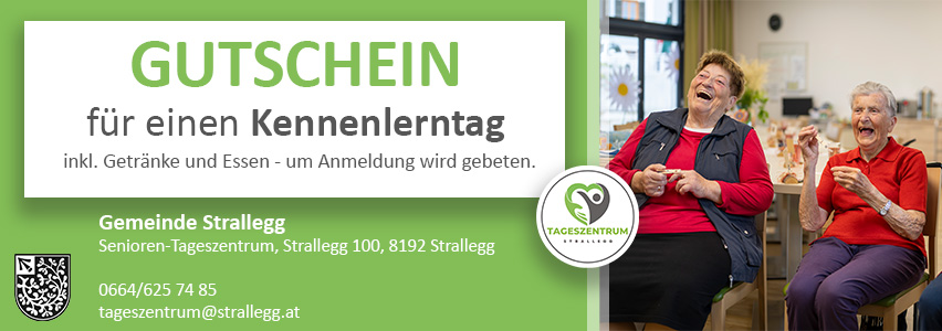 Der Gutschein ist das ganze Jahr 2024 gültig und kann auch im Tageszentrum Strallegg abgeholt werden.